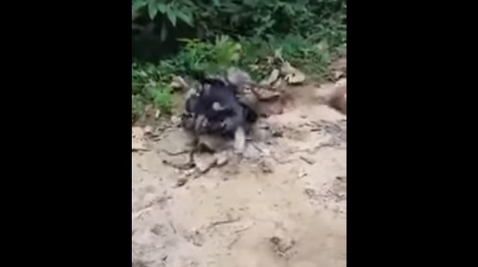 Un clip se ha hecho viral en las redes sociales porque captó el momento de angustia que vivió un perrito tras ser rescatado de morir estrangulado por una boa.