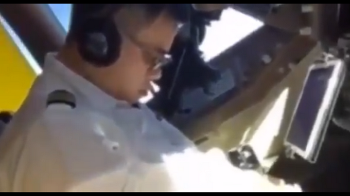 El vídeo muestra a una persona durmiendo sentada. Una situación que no tendría nada de extraño, de no ser porque ocurre en la cabina de un Boeing 747, en pleno vuelo, y el protagonista es el piloto.