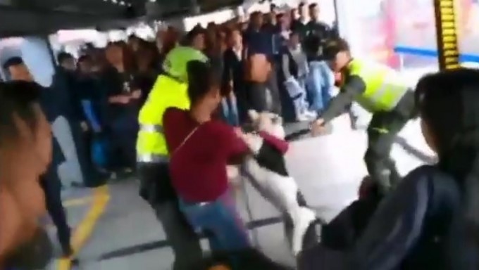 También se observa el momento en el que varios uniformados intentar retener al dueño del perro y este se altera y comienza a ladrar. Es ahí cuando un patrullero se acerca a la mujer que tiene el perro y este lo muerde.