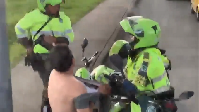 Lo que parece ser un nuevo caso de abuso de autoridad, terminó siendo toda una polémica de lado a lado, debido a que a primera hora se conoció un video en el que dos agentes de policía agreden físicamente al conductor de un vehículo, a tal punto de que, debido al forcejeo, le quitaron la camiseta al hombre.