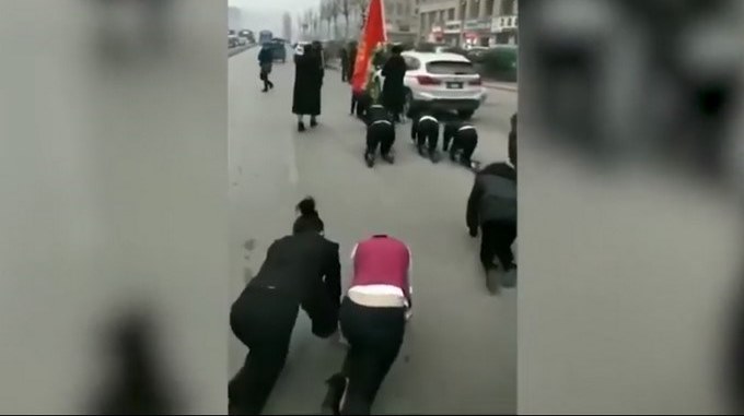 VIDEO: Por no cumplir metas anuales obligan a trabajadoras a gatear por las calles de China