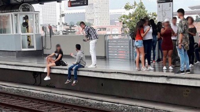 Según detalló el Metro de Medellín en su cuenta oficial de Twitter un grupo de turistas de otra ciudad, infringió una de normas más indispensables para usar el sistema y es la de no sobrepasar la línea amarilla.