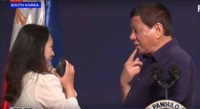El presidente de Filipinas, Rodrigo Duterte, ha generado bastante polémica luego de incitar a una mujer a darle un beso en la boca durante un evento público de su gira de tres días en Seúl, Corea del Sur; el vídeo se ha vuelto viral en las redes sociales donde han criticado el hecho.