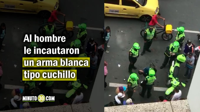 Aunque no se especificó qué o a quién pretendía hurtar, el video compartido por usuarios de Minuto30 da muestra de la detención del sujeto, quien al parecer fue conducido hacia una estación por los mismos uniformados que le incautaron un arma blanca tipo cuchillo.