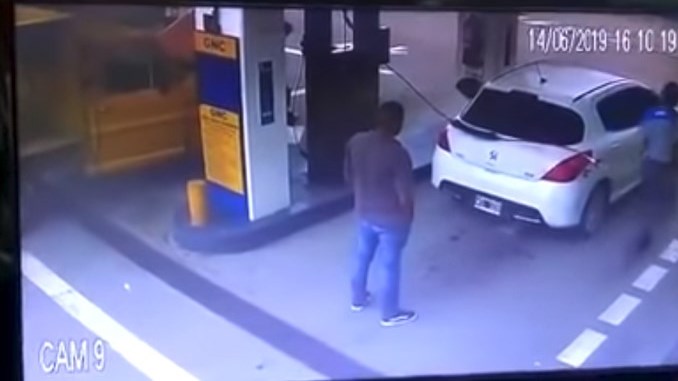 Narcos argentinos paran a cargar combustible y su auto explota, dejando una nube de cocaína. Una cámara de vigilancia registró el momento del estallido. Más info: https://t.co/xCeD16UjYR#PorUnaFronteraSegura #UnidadNacional pic.twitter.com/y1unK5Yasf— Aduana de Cuba (@Aduana_de_Cuba) 19 de junio de 2019