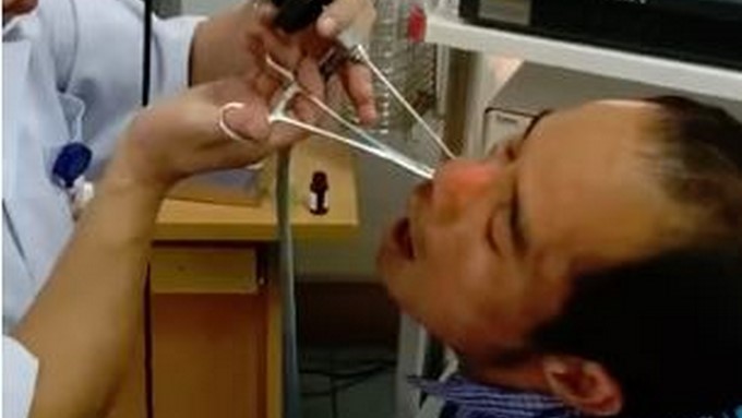 Un video publicado en Youtube y viral en redes sociales, muestra el procedimiento médico en el que le extrajeron a un hombre un extraño animal de la nariz.