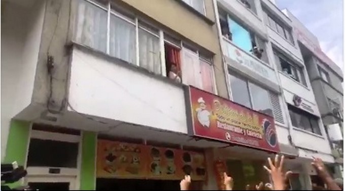 Un video difundido por TuBarco, en Instagram, muestra el instante en el que una señora arroja billetes a la calle desde un balcón cerca de la Plaza de Bolívar en Ibagué.