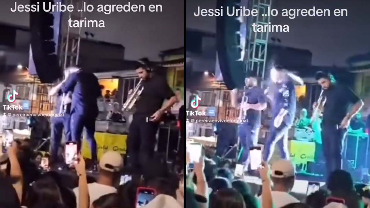 En el video, que ya se difundió en redes sociales, se ve a Jessi Uribe cantando cuando es impactado por lo que parece ser una botella y luego al artista agarrándose la cabeza, mientras que desde el público gritan para que el responsable salga del evento.
