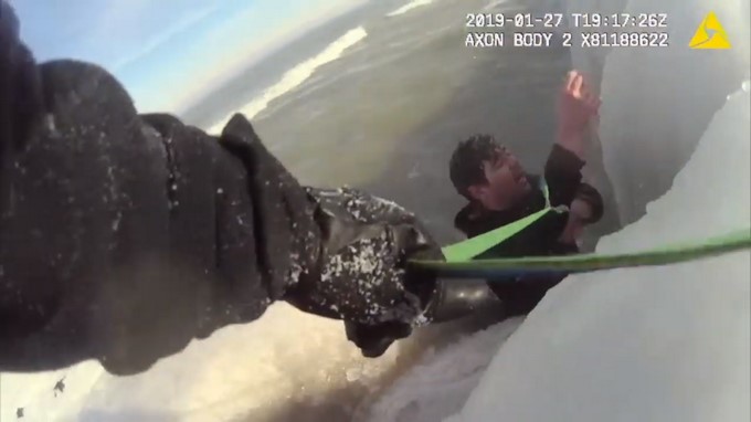 El pasado domingo, oficiales de la policía de Chicago, Estados Unidos, lograron el rescate de un hombre y su mascota en un lago congelado en Michigan, luego de que el dueño del perro quedara atrapado por seguir al perrito que cayó al lago.