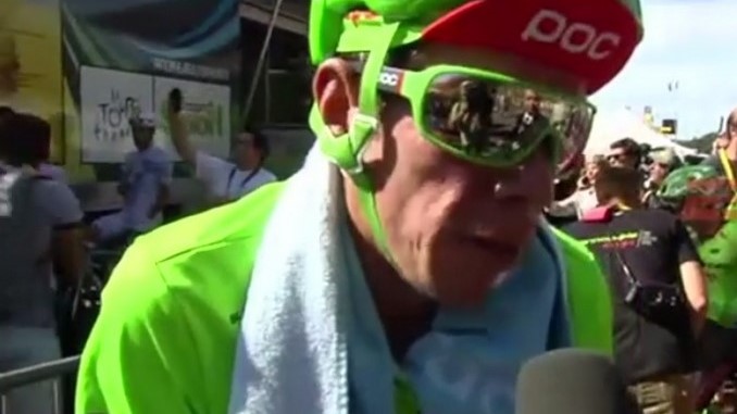 Primero, se salió con la suya en la pregunta de Fernando Calle de Caracol Radio, quien le indagó sobre la caída que involucró a Peter Sagan.