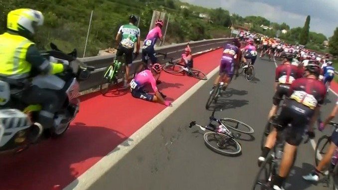 Rigoberto Urán sufrió una caída cuando restaban 56 kilómetros para la línea de meta de la etapa 4 de la Vuelta a España, al parecer uno de sus compañeros fue el responsable del incidente y el colombiano le reclamó airado con un manotazo. Tras la caída otros integrantes del Education First se acercaron para auxiliar … Sigue leyendo Video: Rigo sufrió una caída en la Vuelta a España y le reclamó con un manotazo a su compañero de equipo