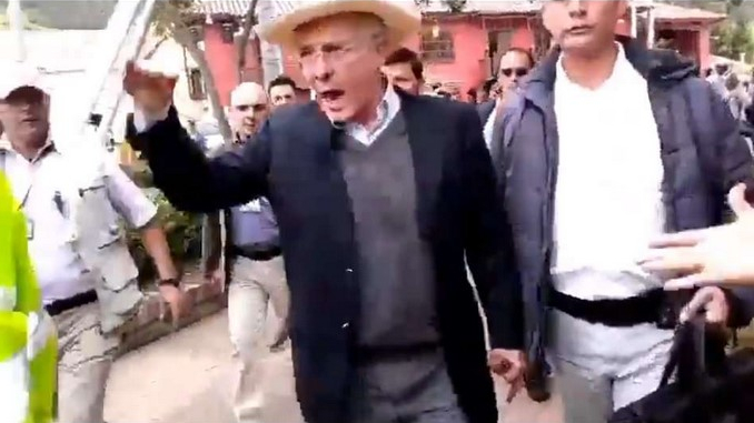 Este jueves se dio a conocer a través de redes sociales un video donde aparece algo alterado el expresidente y senador Álvaro Uribe Vélez durante su visita al municipio de La Calera, en Cundinamarca, tras ser abucheado.