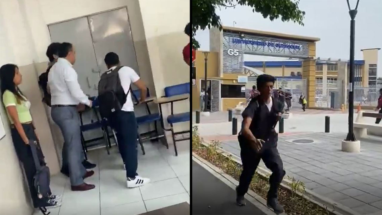 Otro video, grabado a las afueras de la Universidad Nacional de Guayaquil, deja ver a los alumnos correr muy asustados.