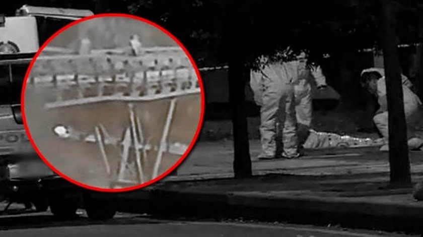En las imágenes que fueron difundidas por medios locales se observa el momento en el que una persona va caminando sobre el puente peatonal, mientras otros tres sujetos la persiguen.