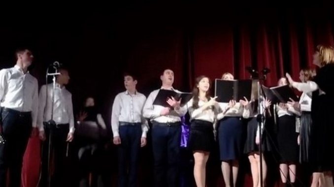 En el video se puede ver como uno de los coristas se desmayó en medio de la presentación navideña que se llevaba a cabo en una sala de conciertos de Radauti, Rumania.