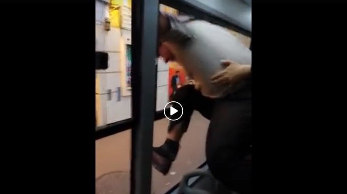 Un sujeto supuestamente estaba marturbándose al lado de una pasajera en un bus público en Lima, Perú, y al ser descubierto, se escapó por la ventana.