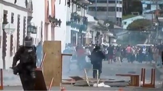 Popayán: violentos disturbios en medio de las marchas de estudiantes y destrucción de las oficinas de Icetex. Uno de los agentes resultó herido >>> https://t.co/BXPS3y0hKi pic.twitter.com/gIdjq5roiE