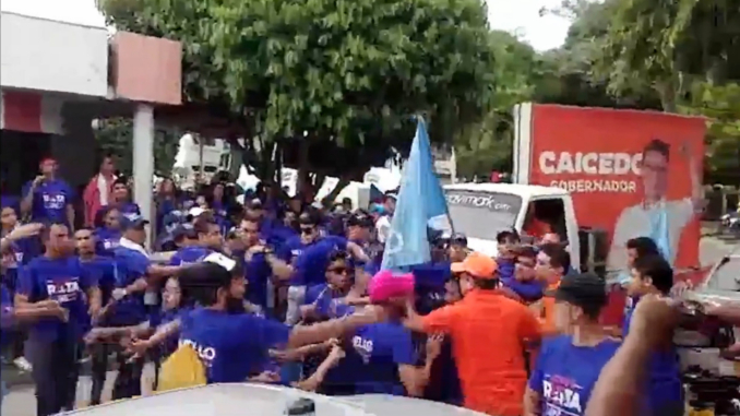 Se trata de los equipos de apoyo de los candidatos Carlos Caicedo Omar y Luis Miguel, “El Mello” Cotes, quienes se cruzaron en la calle y, por segundos, generaron una problemática que fue solucionada a pesar de lo que serían algunos intentos de agresión.