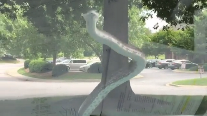 VIDEO: Serpiente sobre el vidrio de un carro intimida a sus ocupantes