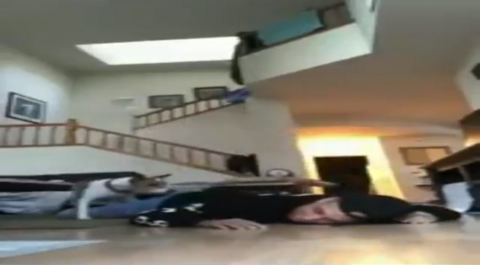 El joven grabó el momento y lo compartió en la web, donde se ve cómo el chico se desploma en frente su perro, pero este en vez de preocuparse, se “aprovechó” de la situación.