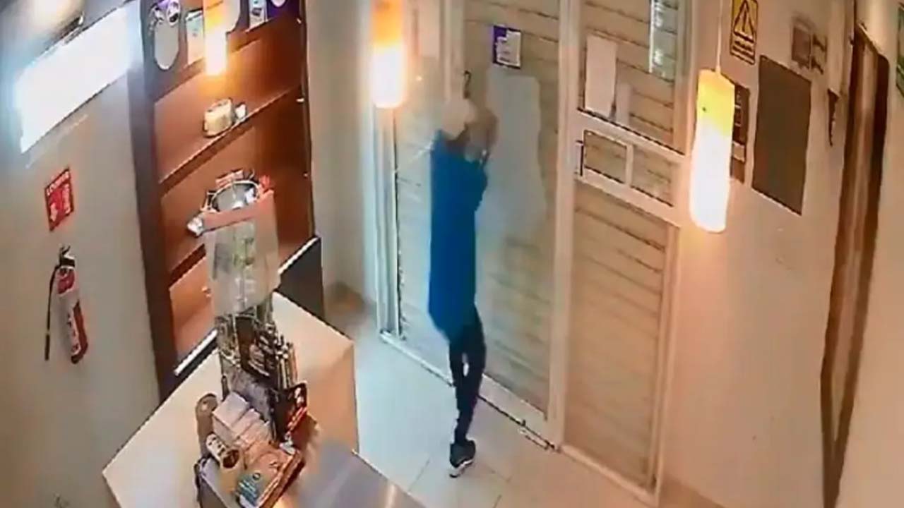 Las cámaras de seguridad registraron el momento exacto en el que una empleada dejó encerrado a un ladrón