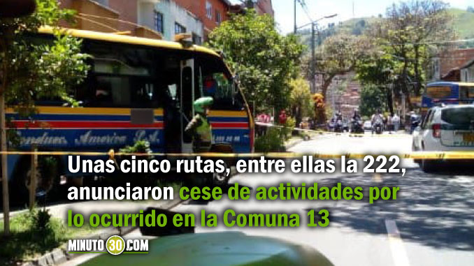En los últimos meses han sido asesinados dos conductores, dos buses han sido quemados y un pasajero asesinado en rutas de transporte público que tienen paso por la Comuna 13, san Javier.