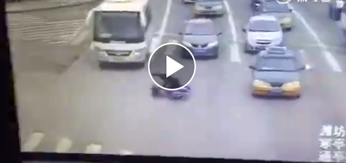 Terrible las imágenes que llegan desde una avenida en China cuando un motociclista se aventura a pasar con el semáforo en rojo.