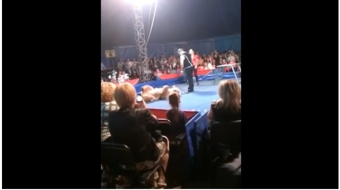 Ocurrió durante la función de un circo en Ucrania, un oso se salió del control de su domador y terminó en medio del espectáculo.
