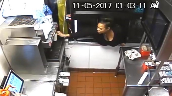 Una mujer estadounidense aprovechó que la empleada se fue a buscar el pedido, y se metió por la ventana para robar el local de comida rápida en Washington.