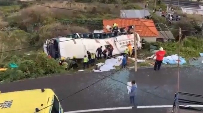 🇵🇹 | Primeras imágenes desde Madeira, Portugal. Un micro volcó con mas de 50 personas adentro. Hay 9 muertos confirmados y la cifra puede aumentar. pic.twitter.com/ax43glWzGY