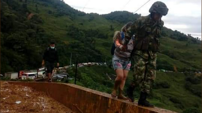 En las imágenes se puede ver como los uniformados ayudan a las personas a subir hasta el otro lado del derrumbe, algunos agarrando a los ciudadanos de las manos, para evitar un accidente. Además, los soldados subían las pertenencias de los pasajeros como maletas y otros objetos pesados, con el fin de minimizar el esfuerzo de los ciudadanos al pasar por el derrumbe.