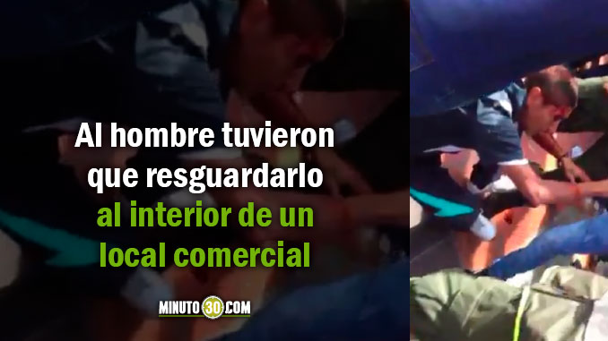 Según las imágenes al hombre tuvieron que resguardarlo al interior de un local comercial del sector para evitar un hecho que lamentar.
