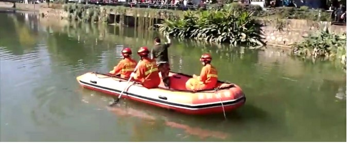 Un tremendo dispositivo de rescate fue desplegado por la policía china para rescatar el supuesto cuerpo de una mujer flotaba en un río.