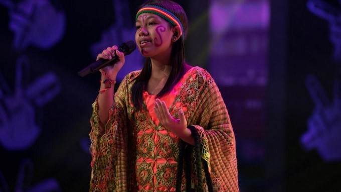 Sara enamoró a los tres jurados del programa por su interpretación en la cual salió con un vestido de las mujeres wayúu, sandalias y el rostro pintado.
