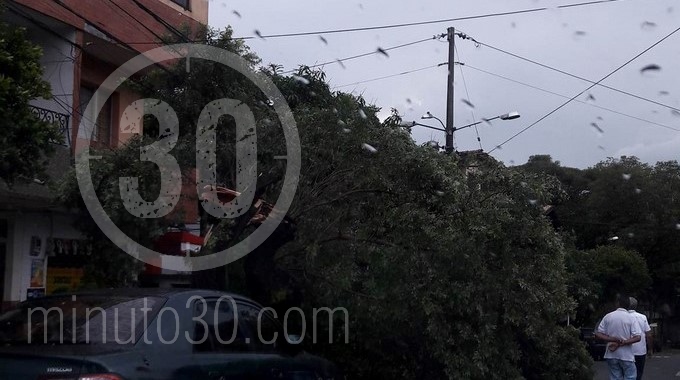 Tras el fuerte aguacero que cayó en el sur del Valle de Aburrá el árbol cayó afectando parte la del techo y de la fachada de la casa y un par de ventanas de un edifico aledaño.