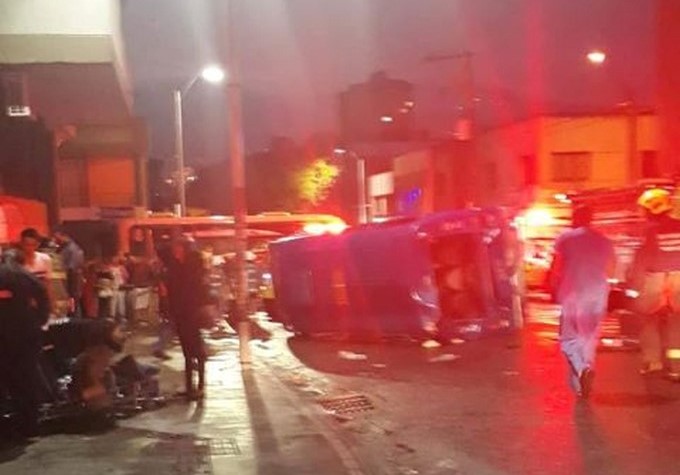 Video: Un bus terminó volcado dejando varios pasajeros heridos tras un grave accidente de tránsito en el centro de Medellín