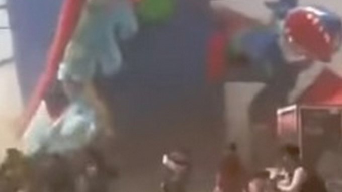 Una persona que estaba el pasado domingo 31 de marzo en un parque en la ciudad de China, Zhengzhou, grabó el sorpresivo momento cuando un tornado hizo un volar un castillo inflable con varios niños dentro.