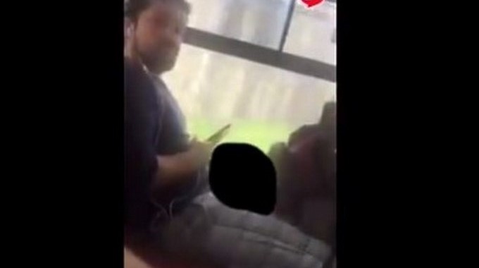 El sujeto sin ningún pudor saca su miembro viril al aire y empezó a consentirse, pero cuando el hombre ve que una mujer lo está grabando se tapa con su mochila que llevaba en las piernas.