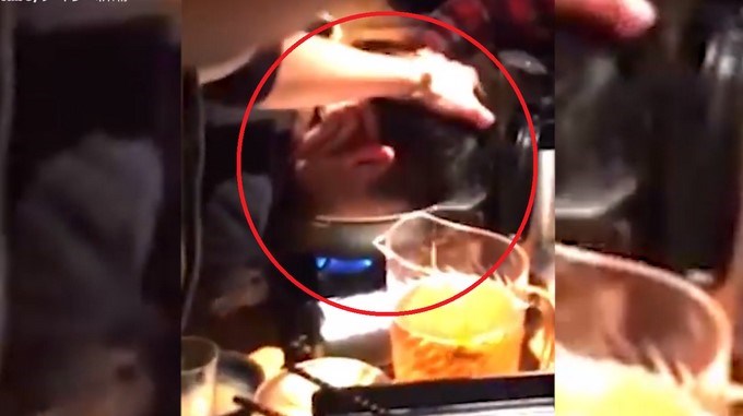 Las imágenes muestran a un grupo de personas en un restaurante de Tokio alrededor de una mesa con comida. Un hombre cuyo rostro no lo muestran, agarra la parte posterior de la cabeza de la víctima y la fuerza para que meta su cara en una olla de agua hirviendo llamada ‘nabe’, que se utiliza para cocinar carne y verduras.