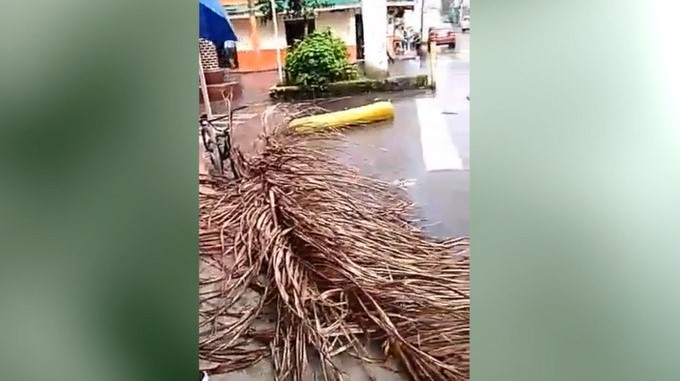 Al parecer en horas de la tarde de ayer 4 de mayo el señor se encontraba en su puesto de venta cuando una de estas gigantescas hojas secas cayó y lo hirió en su espalda, dejándolo en estado delicado.
