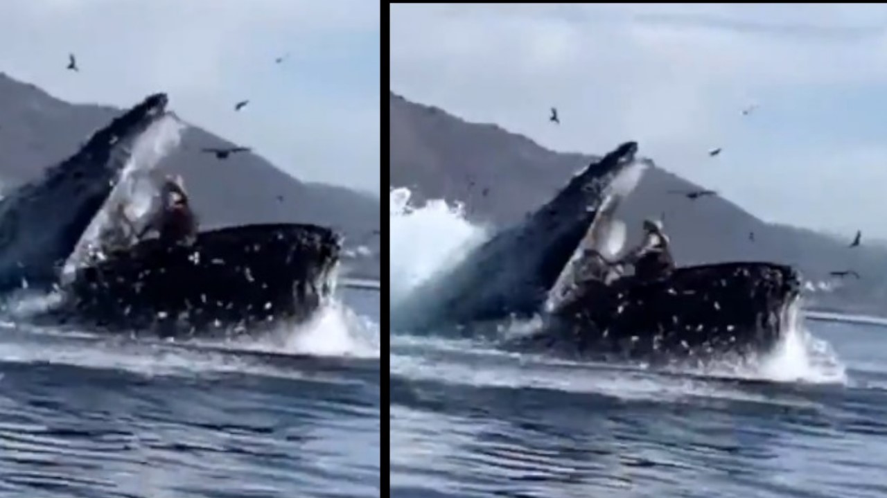 En el video se ve el momento en que el animal atrapó a las dos mujeres en su boca. El clip deja ver que una choca con la punta de la boca de la ballena y cae la mujer, la otra por la fuerza con la que sale en animal la lanza al agua.