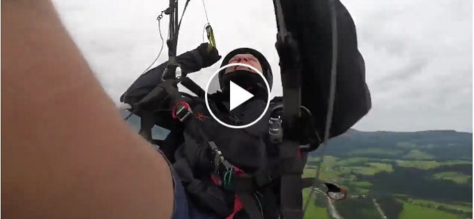 El video, capturado en Kossen, muestra como el muchacho se enreda con el paracaídas de reserva, haciendo todo el recorrido vaya en espiral y hacia abajo.