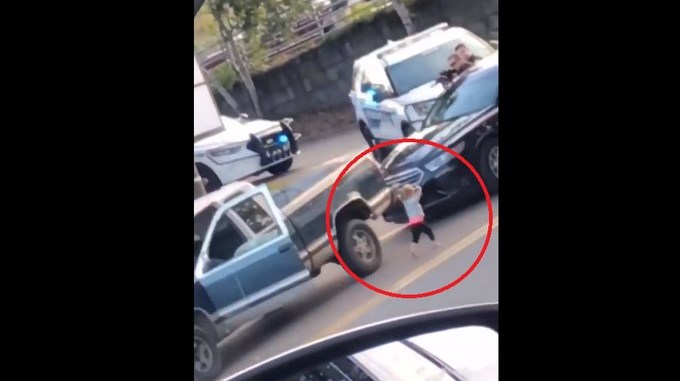 Las imágenes muestran como los Policías arrestan al padre de la menor, mientras apuntan con sus armas al vehículo en donde ambos se movilizaban.