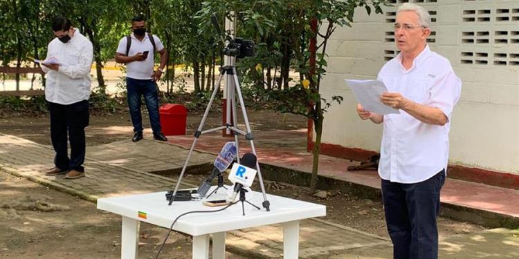 “Mi vida pública ha generado mucha controversia pero carezco de voluntad para dejar de pensar en Colombia. No puedo renunciar a advertir las amenazas que nos asechan”, manifestó Uribe en la declaración leída en su hacienda El Ubérrimo, en el departamento caribeño de Córdoba.