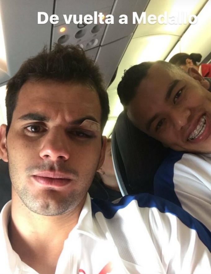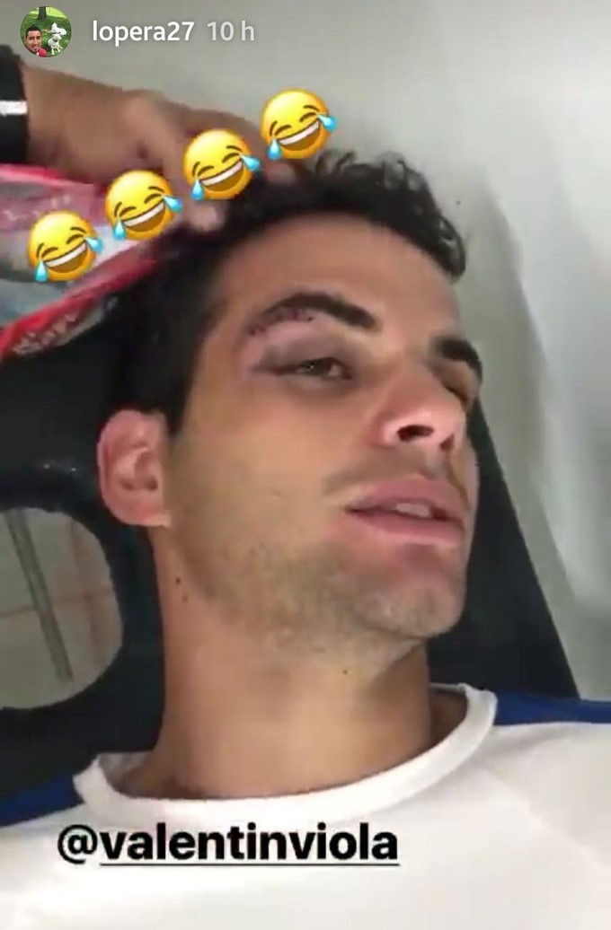 El extremo argentino del Deportivo Independiente Medellín, Valentín Viola, inicialista en el juego ante Deportivo Cali en Palmaseca, sufrió un fuerte golpe en una de sus cejas y así lo mostraron sus compañeros y él mismo en redes sociales.