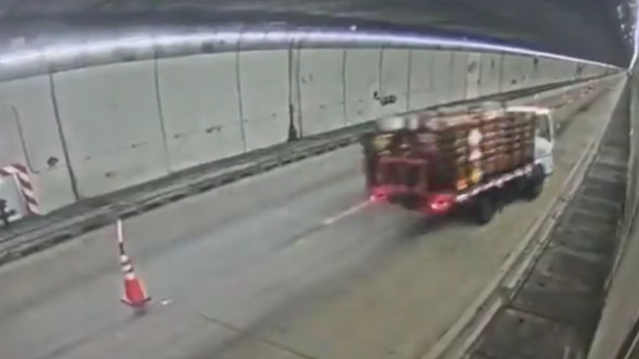 En el video quedó registrado como el camión pierde el control y se da contra el muro del Túnel.