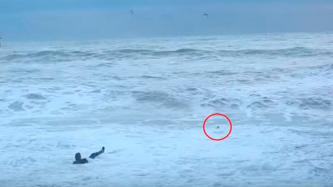 No le importó nada, corrió en dirección al mar abierto y se lanzó a las aguas mientras su perro se encontraba en medio del fuerte oleaje.