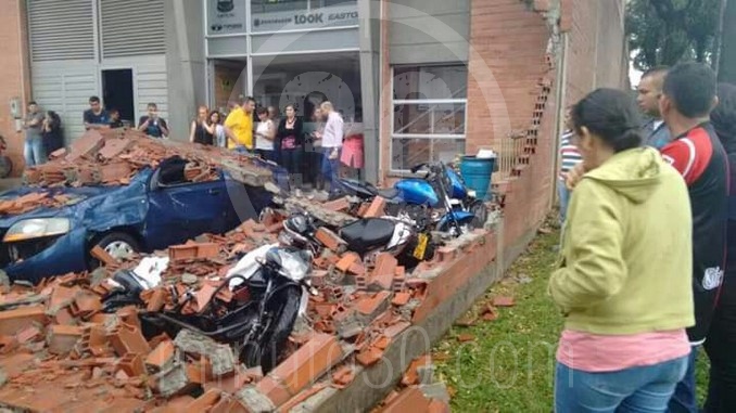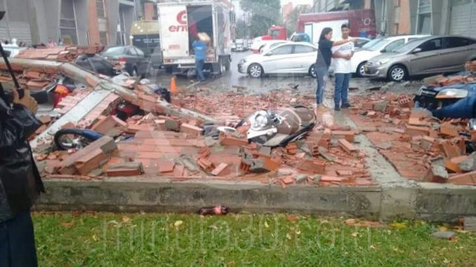 La caída de un muro en la Mayorista, fue uno de los accidentes más significativos tras el fuerte aguacero. Tres vehículos quedaron atrapados, al igual que varias motocicletas. No resultaron personas lesionadas.