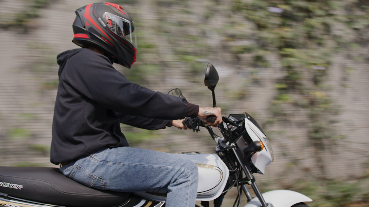 Andrés Rocha, domiciliario en la ciudad Bogotá, habla de por qué la Bóxer CT100 es la mejor compañera de los domicilios, pues empieza el día relajadito ‘Me ofrece seguridad y confianza’,
