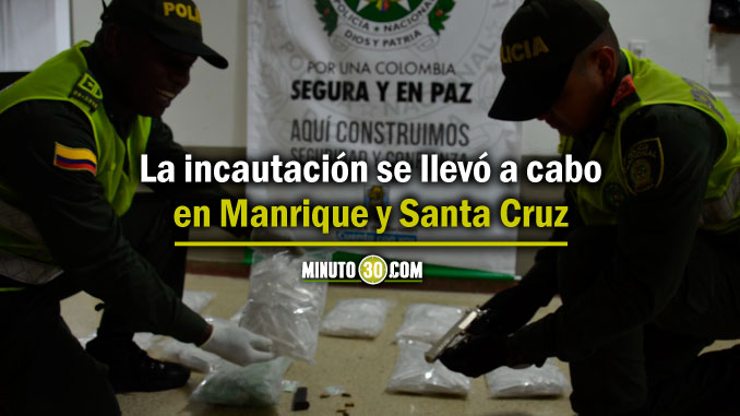 Minuto30.com- Uniformados de la Policía incautaron en el barrio Manrique gran cantidad de estupefacientes y un arma de fuego, elementos abandonados por un grupo de hombres cuando notaron la presencia de los uniformados.